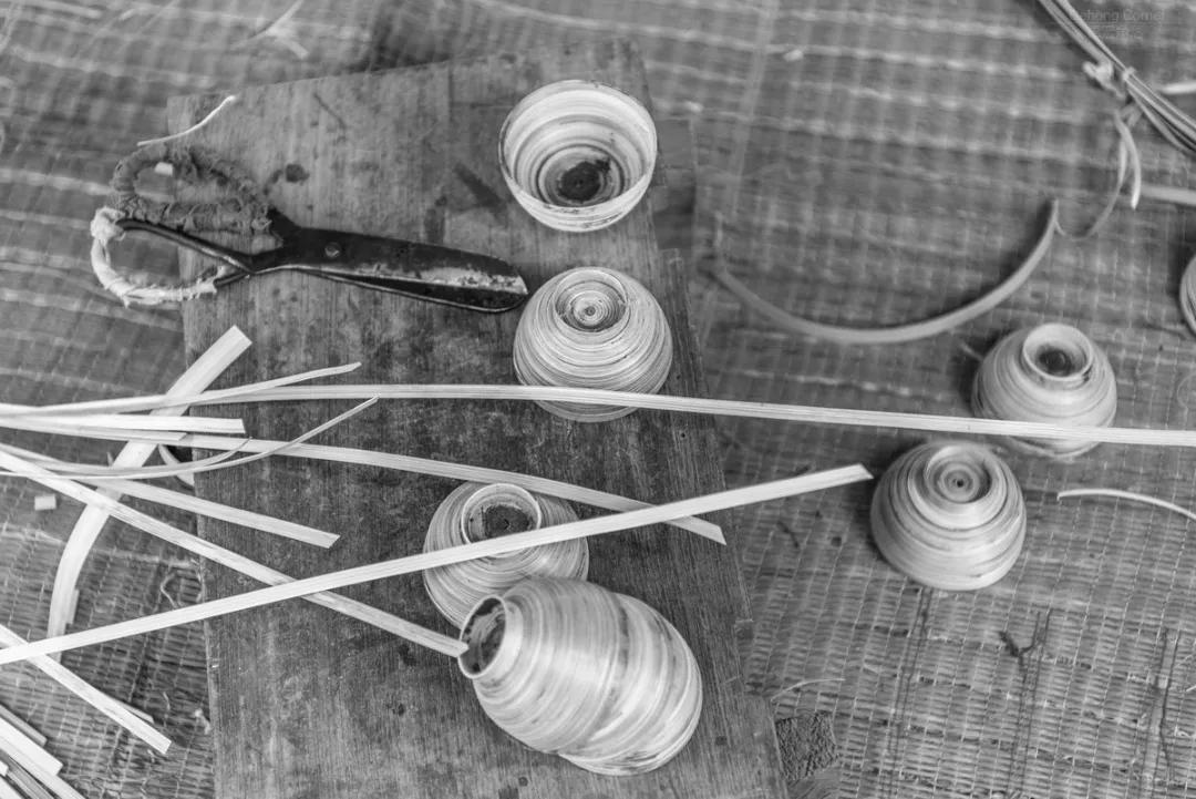 用竹篾編織大小器皿,做成可以上漆的胎體