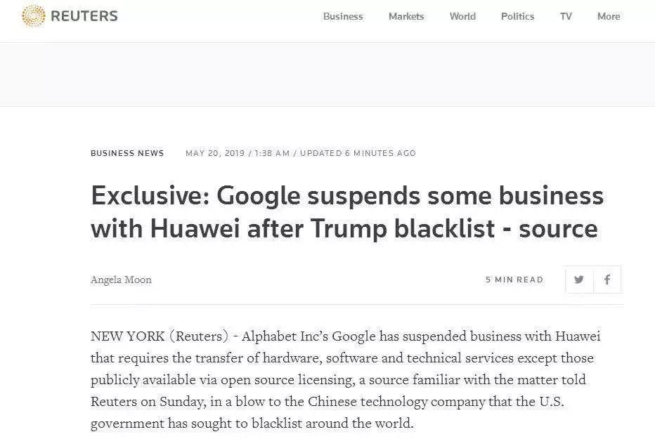 特朗普動(dòng)用政府力量,強(qiáng)迫谷歌暫停與華為的商業(yè)往來!