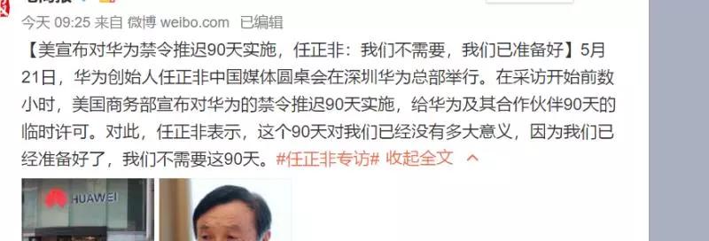 對(duì)于美國(guó)宣布對(duì)華為禁令推遲90天實(shí)施的決定,任正非更表示:“我們已經(jīng)準(zhǔn)備好了,我們不需要這90天!”