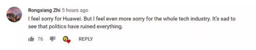 “為華為感到遺憾,更為整個(gè)科技行業(yè)感到悲哀。親眼目睹政治因素毀了這一切,真讓人難過?!?/span>