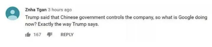 “特朗普說中國(guó)政府控制華為,那谷歌現(xiàn)在在做什么?不就在做特朗普指責(zé)的事情嗎?”