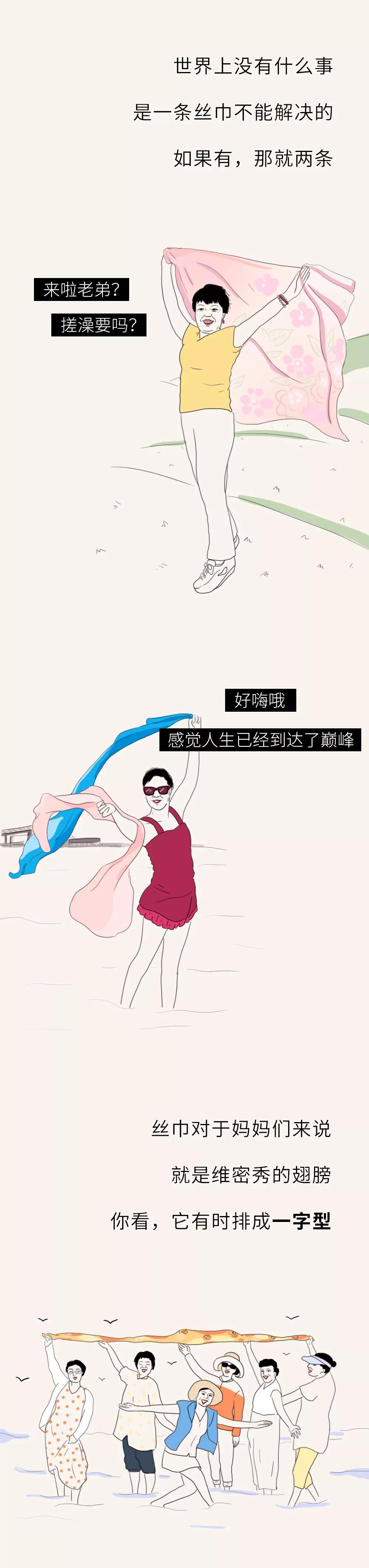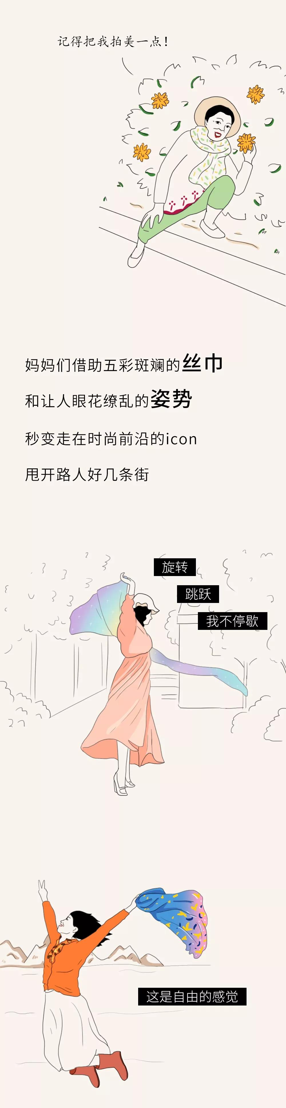 每次一到景區(qū),身披各色絲巾的大媽們,絕對是一道亮麗的風(fēng)景線:她們紅得像火、粉得像霞、綠得像草、白得像雪、藍得像天,憑自己的實力向你證明:什么才叫五彩斑斕。她們的人生信條就是:頭可斷,血可流,絲巾不能丟。絲巾舉過頭頂?shù)哪且凰查g,感覺自己就是Super star。對于她們來說,萬物皆可盤拍:除了景區(qū)的標(biāo)志性建筑、各種帶字的標(biāo)牌、花草樹木,還有石獅子、雕像、欄桿等等,甚至連路邊發(fā)傳單的玩偶也不放過……