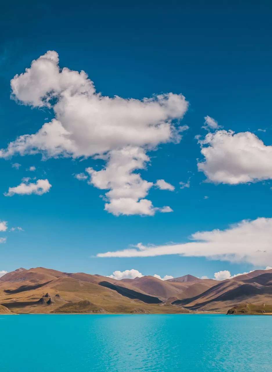 水面上的藍色不停地變幻,有時深,有時淺,整個羊湖就像一塊巨大的調(diào)色板,裝下了所有的藍色。