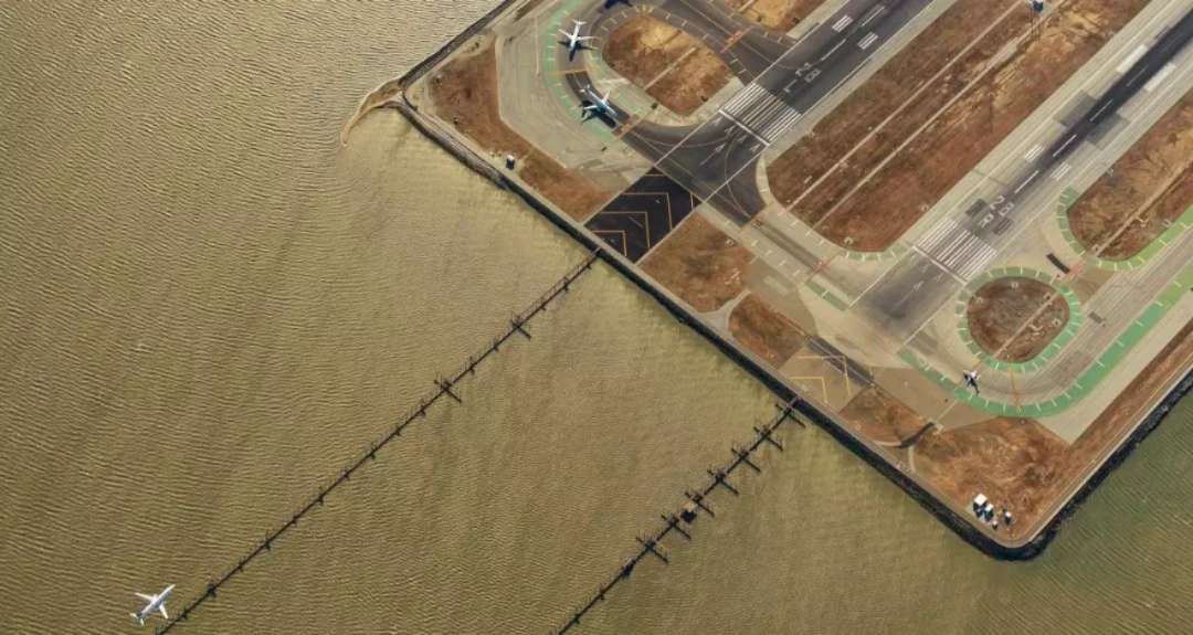 舊金山國際機場(SFO)有四條跑道。這是我拍攝的編號28號的跑道降落端處的罕見景觀。我一直夢想著從空中記錄這個繁忙機場的動感時刻。經(jīng)過申請,我終于獲準(zhǔn)從機場上空直接駕駛飛機經(jīng)過。這是一個大風(fēng)天,機場的風(fēng)速在每小時35-45英里。強烈的飛行顛簸,讓一邊控制飛機,一邊忙著拍攝的我簡直手忙腳亂。這次飛行拍攝很有挑戰(zhàn)性,但它也是如此的令人激動,完成這個拍攝計劃讓我?guī)滋於妓恢?/span>