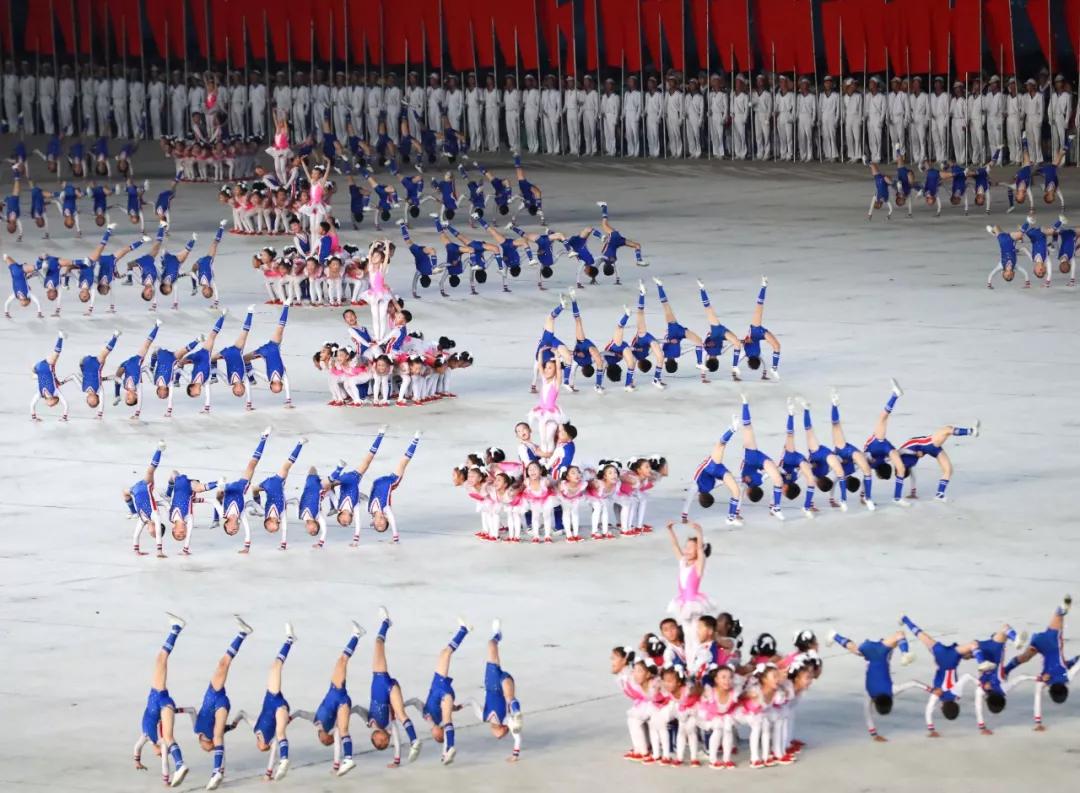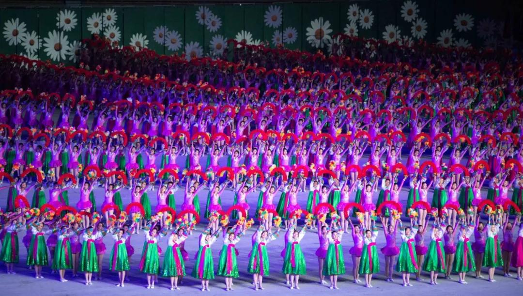 平壤大同江畔,綾羅島“五一”體育場是團體操的主要舞臺。演出以朝鮮民族獨特的“歌舞之美”、富有活力的團體操、嘆為觀止的雜技表演,展現出朝鮮革命與戰(zhàn)爭、政治和軍隊建設、民生與經濟發(fā)展以及對外交往的宏偉畫卷。
