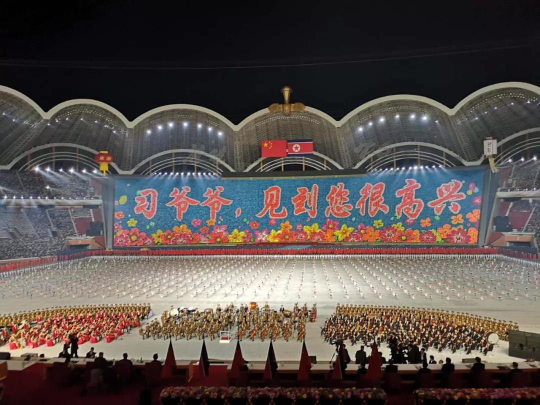 這臺演出為習近平此訪專門精心創(chuàng)作,數萬名朝鮮演員參加表演,朝鮮三大樂團首次同臺獻藝,整場演出氣勢恢宏、震撼感人。