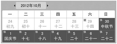之前《國務院辦公廳關于2012年部分節(jié)假日安排的通知》中已對今年中秋國慶假期的放假調休日期做出了具體安排。其中中秋節(jié)和國慶長假合并安排為8日假期,自9月30日至10月7日。之前曾在2009年出現過一次中秋國慶合并的8天假期。