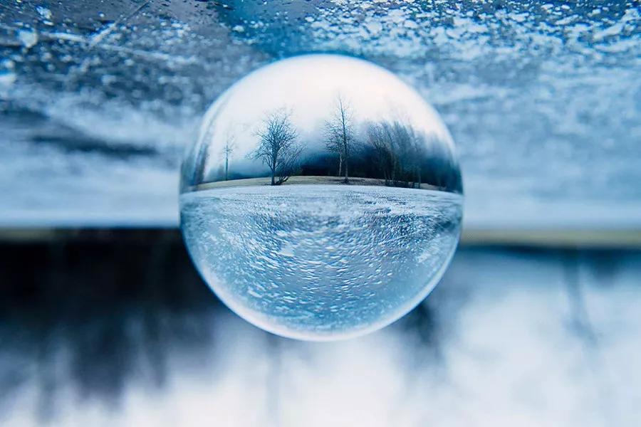 拍攝這一題材時(shí)要控制好球體的畫(huà)面比例,既不能太小導(dǎo)致球內(nèi)紋理過(guò)于不明顯,又不能太大導(dǎo)致環(huán)境信息記錄不足,顯不出“虛實(shí)對(duì)比”的感覺(jué)。
