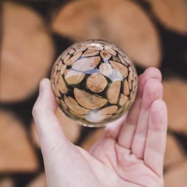 使用水晶球進(jìn)行聚焦,不僅可以實(shí)現(xiàn)放大,還可以利用畸變來(lái)使紋理產(chǎn)生一定的變化感;再利用小/清晰虛像與大/模糊實(shí)景的對(duì)比,會(huì)讓作品顯得更有趣。
