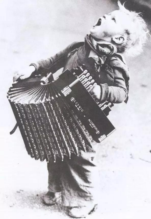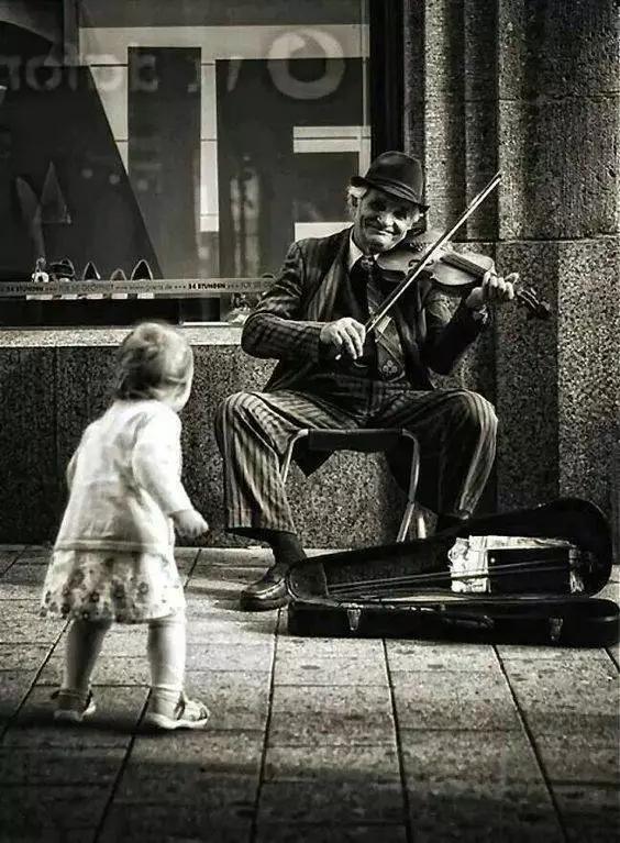 大街上,流浪的老爺爺拉著小提琴,路過的小孩跟著音樂,歡快地跳起了舞。