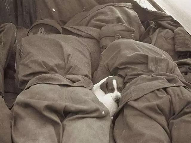 二戰(zhàn)的戰(zhàn)場上,兩個士兵護著一只狗狗就這樣安穩(wěn)地睡著了。