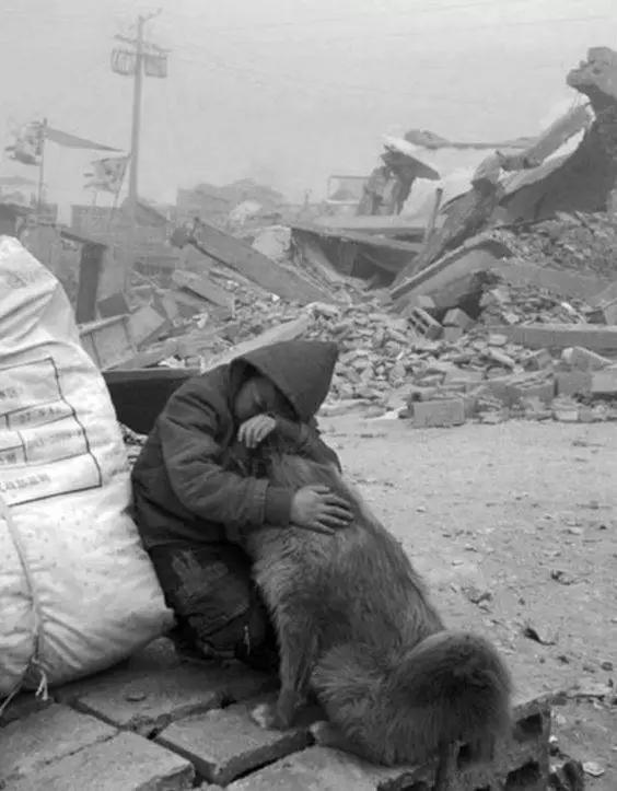 沒有了家的小男孩,抱著一直默默待在旁邊的狗狗,哭了很久很久。