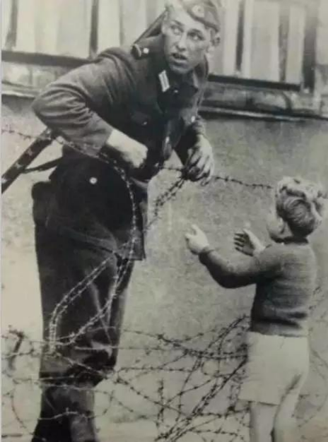 戒備森嚴的戰(zhàn)爭里,一個士兵正偷偷幫助一個小男孩翻過鐵網(wǎng),和家人團聚。