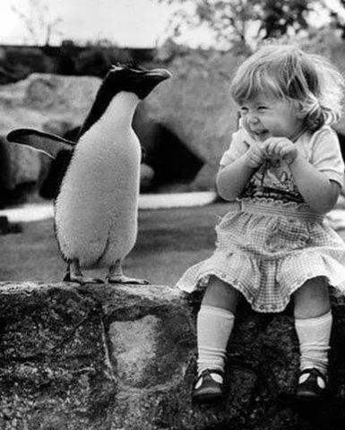第一次見到企鵝寶寶的小丫頭,高興地手足都無措了。