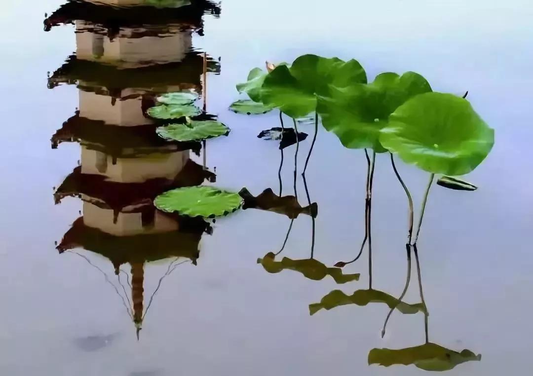 疏朗的荷塘,婷婷玉立的荷葉,微風(fēng)吹來微微翻動(dòng),最具中國風(fēng)的荷塘,滿是詩情和畫意,巧妙地利用水中倒影,容易構(gòu)圖一種中國畫的意味。