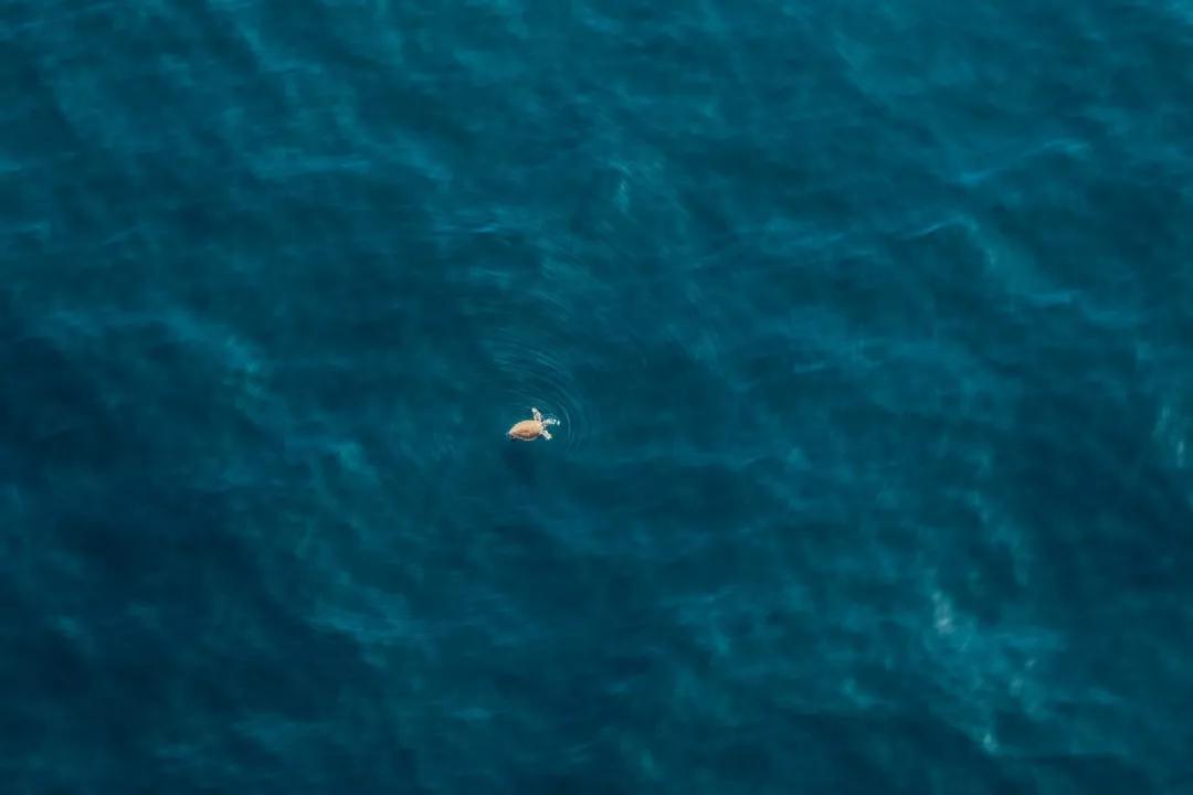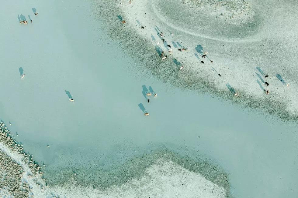 如火烈鳥、好望角大羚羊、甚至是一只在蔚藍(lán)的海水中休息的烏龜。動(dòng)物們行進(jìn)時(shí)留下的痕跡和陰影都是他作品中重要的組成元素。