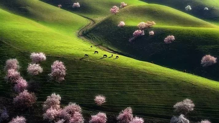 新疆的春天是絢爛的,可要想感受這里的絢爛,那就必須去看杏花。