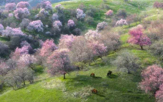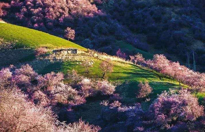 4月初,這里就變身杏花海洋,每個(gè)山巒都點(diǎn)綴著開(kāi)滿了花朵的野樹(shù)林。