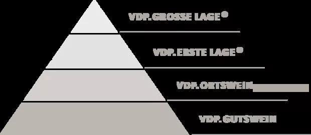 VDP酒莊使用著一套與德國官方葡萄酒分級同時存在,卻又完全獨立的分級系統(tǒng)。眾所周知,1971年頒布的德國官方葡萄酒分級以葡萄成熟度為標準,但這個標準過于片面,難以區(qū)分酒的真實品質(zhì)。為了解決這個問題,VDP建立了聯(lián)盟內(nèi)部的分級制度,最新的分級制度更新于2012年,以勃艮第的風(fēng)土理念為出發(fā)點: