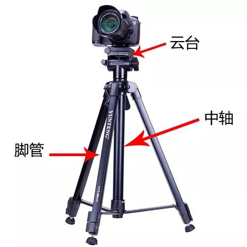 三腳架一般由三個部分構成:云臺、中軸、腳管。