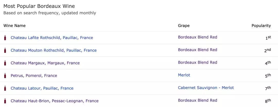 作為印證,5個一級莊的搜索量確實占據(jù)波爾多左岸的前5名。