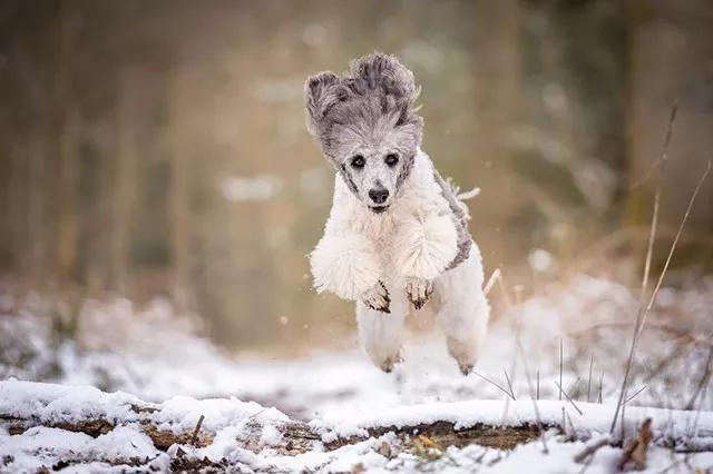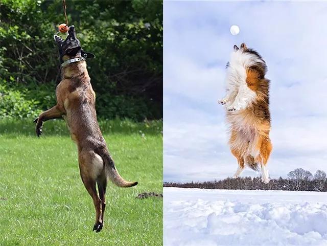 與跑步相比,這一題材相對(duì)簡(jiǎn)單,只需要狗主人/助手配合,發(fā)出讓狗狗跳起的指令就行——拿著玩具,樹枝,食物都可以。