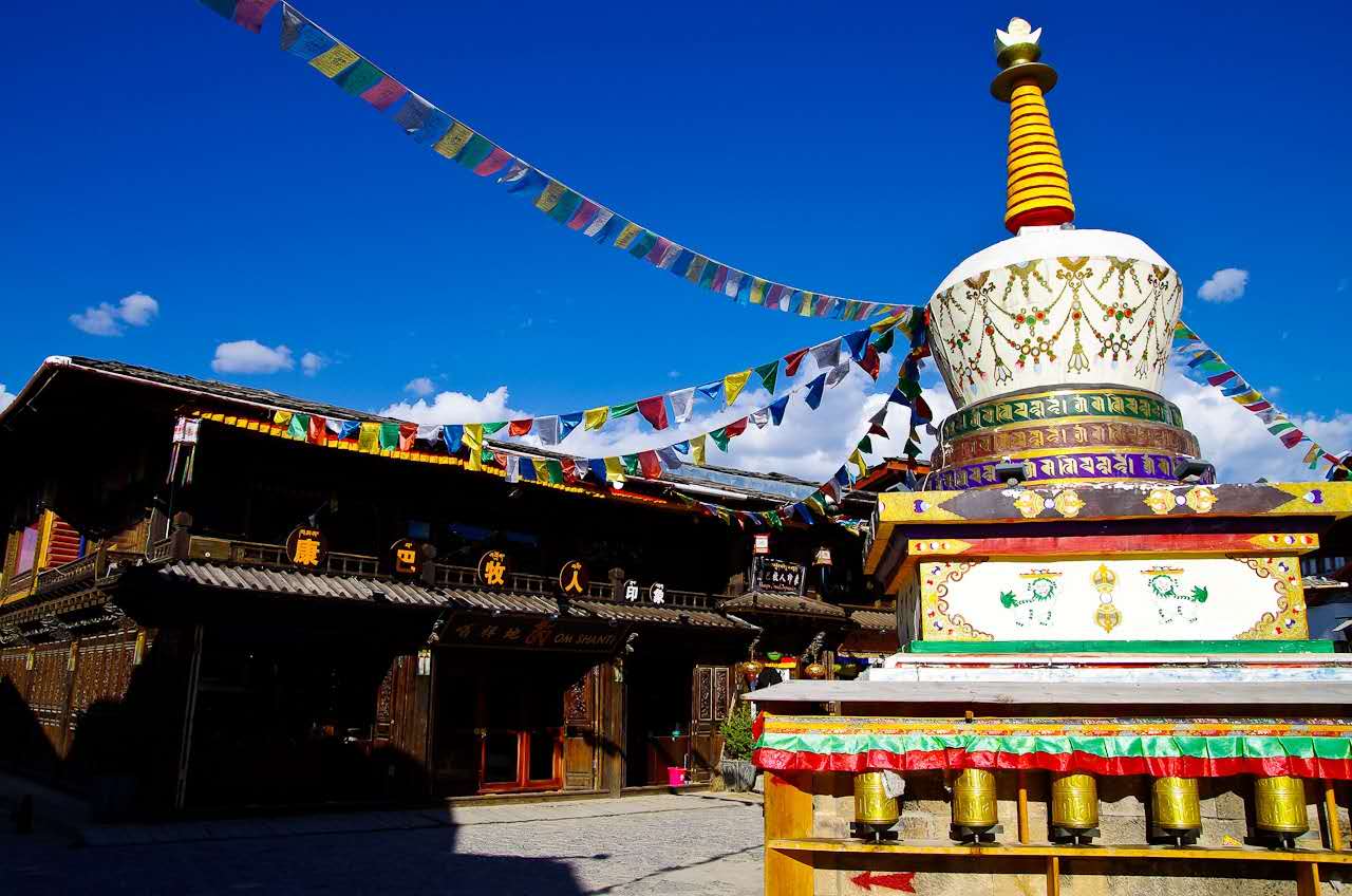 隨后乘車前往月光古城——【獨(dú)克宗古城】(游覽時(shí)間約50分鐘),前往龜山公園,轉(zhuǎn)世界上最大的轉(zhuǎn)金桶,為愛你的人和你愛的人祈福,游覽結(jié)束后乘車前往贈(zèng)送土司家宴,觀看藏族最有民族特色的歌舞表演;入住酒店休息。