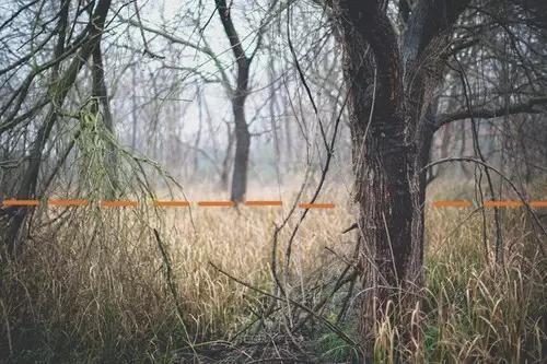 說到這里,作者還要給大家說明一下:所謂的地平線、水平線并不一定非要是肉眼很明顯的看到的一條線,它也可以是存在于攝影師腦子里的一條有意識的線條。比如,當我們在拍攝樹林的時候,很難一眼就看到水平線,只能依靠一些參照物來體現(xiàn)。