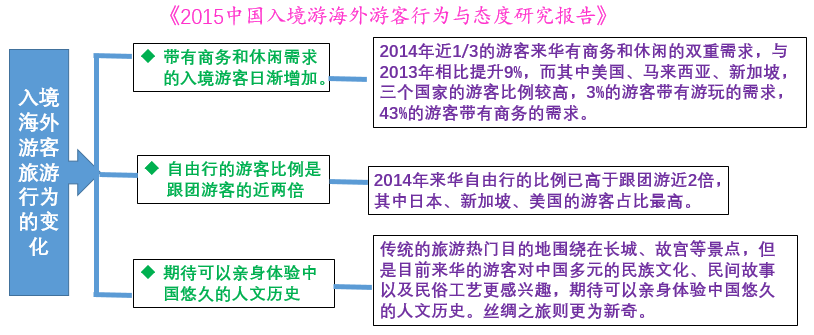 境外游客從本地入境,既要在本地旅游,又要到外省旅游,這個(gè)時(shí)候我們?yōu)槠湓O(shè)計(jì)的旅游產(chǎn)品既有本省旅游產(chǎn)品,又有外省旅游產(chǎn)品。