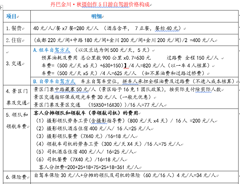 (8)其他費用。如果是主題自駕游,涉及到租場地、聘請指導(dǎo)教師費用及其他費用由游客分?jǐn)?。需要分?jǐn)偟矫總€游客頭上。