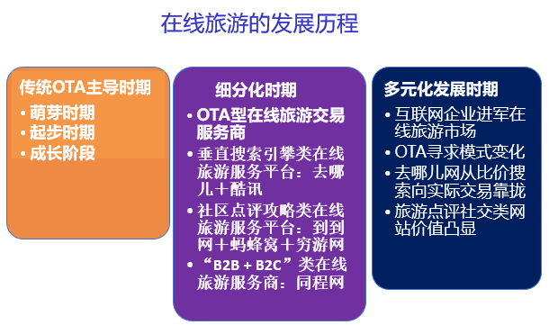 這一時(shí)期在線旅游市場(chǎng)參與的主體越來(lái)越多,且模式亦越來(lái)越多元化、差異化、各家均處于持續(xù)變革期。