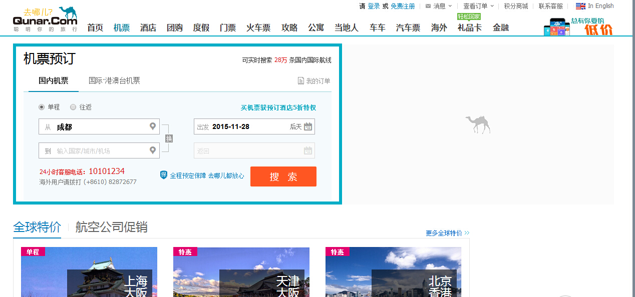 2005年2月去哪兒網(wǎng)創(chuàng)立,對(duì)線上和線下的機(jī)票、酒店、度假和簽證等資源進(jìn)行整合,為用戶提供及時(shí)、可靠的旅游產(chǎn)品價(jià)格查詢、比價(jià)和預(yù)訂服務(wù)。