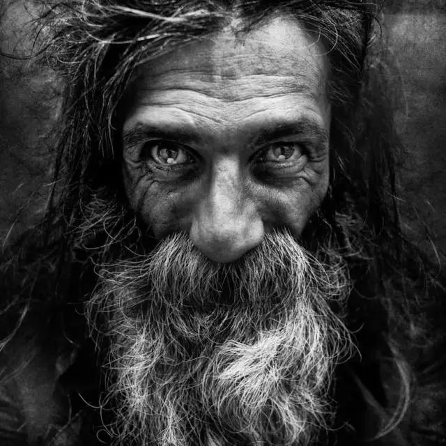因為沒有顏色的干擾,所以黑白攝影更能表達(dá)情感,特別是在拍攝人像照片時,特寫鏡頭更能震撼人心。下面這張攝影作品,攝影師利用黑白攝影,將人物的眼神、皺紋、膚質(zhì)等表現(xiàn)的淋漓盡致。