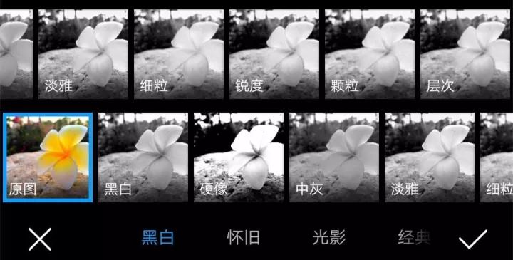 不會使用Photoshop也沒關(guān)系,手機(jī)自帶的美顏相機(jī)也有這項功能,找到“濾鏡”——“黑白”即可。