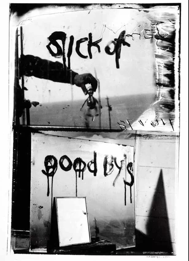 1971 年,隨著人們對弗蘭克及其作品的更加關(guān)注,榮譽不斷到來。他與第二任妻子瓊·利夫(June Leaf)決定一道自我流放。他們來到加拿大新斯科舍省馬布島上,遠離塵囂,弗蘭克又開始拍攝靜態(tài)的照片。但他沒有重復(fù)自己,這一次他使用的是 5×7 畫幅一次成像的寶麗來相機,并且很少用單幅照片,而是用多幅照片拼接成作品,常常還在底片上刻上文字,與他的以前作品完全不同。