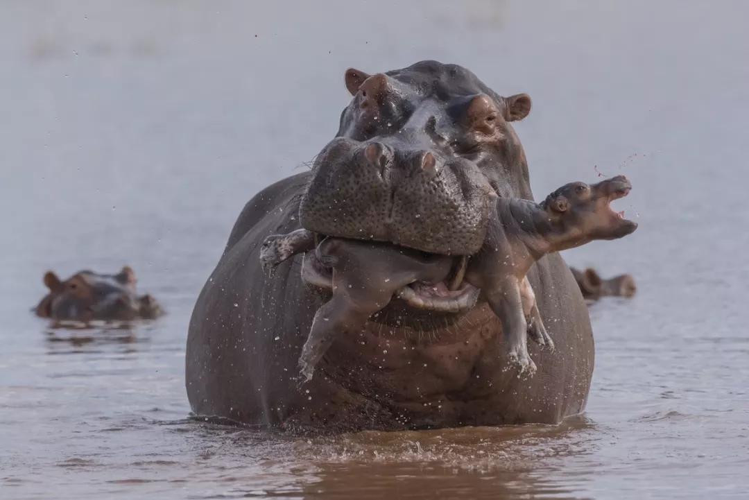 津巴布韋卡里巴湖的淺灘上,一只才出生幾天的河馬寶寶正享受著媽媽無微不至的照顧,這時(shí),一只巨大的雄獸突然直直地向這對(duì)母子襲來。它先是追逐了一會(huì)兒母親河馬,在追逐中趁母河馬不注意一口咬向她的幼崽,顯然是一早就計(jì)劃好了的。一旁悲痛欲絕的母河馬全程目睹了這一切。