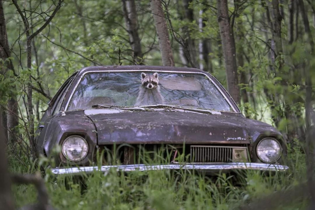 傍晚時(shí)分,在加拿大薩斯喀徹溫省的一個(gè)廢棄農(nóng)場(chǎng)里,一只浣熊將頭從一輛二十世紀(jì)七十年代福特的擋風(fēng)玻璃的碎洞中探出,而后座上正坐著它五個(gè)興奮的孩子。這位浣熊母親將頭探出后,仔細(xì)觀察了周圍環(huán)境很久,在確定安全以后,它趁著夜色鉆出了這輛車去為孩子們尋找食物。