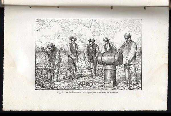 人們發(fā)現(xiàn)使用硫和二氧化碳的混合蒸汽,可以殺死根瘤蚜蟲。但是必須要用大型針管一樣的設(shè)備,把蒸汽“注射”到葡萄根部才行。