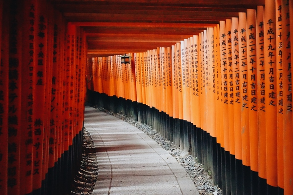 【伏見(jiàn)稻荷大社】(停留約40分鐘)日本伏見(jiàn)稻荷大社建于8世紀(jì),主要是祀奉以宇迦之御魂大神為首的諸位稻荷神,稻荷神是農(nóng)業(yè)與商業(yè)的神明,香客前來(lái)祭拜求取農(nóng)作豐收、生意興隆、交通安全。它是京都地區(qū)香火最盛的神社之一,因?yàn)楹偙灰暈樯衩鞯竞傻氖拐?,在神社里有各式各樣的狐貍石像,狐貍臉形的繪馬是這里的一個(gè)特色;