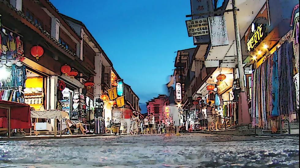 入夜,洋人街—【西街】被迷幻的光影驚醒,1400余年歷史的古街,卻將西方的洋氣浪漫、古時(shí)的純樸典雅、現(xiàn)代的文藝新奇融為一體,相得益彰;