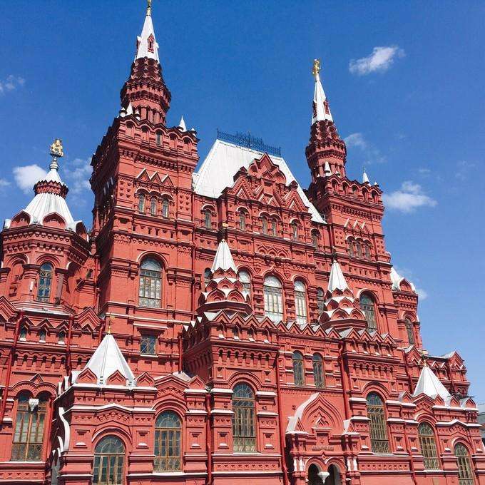 【無名英雄紀(jì)念碑】(不少于 10 分鐘)它建成于 1962 年衛(wèi)國戰(zhàn)爭勝利紀(jì)念日前夕,正面朝北、東西走向的深紅色大理石陵墓上,稍靠西側(cè) 陳設(shè)著鋼盔和軍旗的青銅雕塑,造型簡潔明快,蘊(yùn)意肅穆深長。墓前有一個凸型五星狀的火炬,五星中央噴出的火焰,從建成時一直燃燒到 現(xiàn)在,從未熄滅,是俄羅斯婦孺皆知的“全國第一崗”,【圣瓦西里大教堂】(外觀不少于 15 分鐘)曾經(jīng)叫圣母大教堂,后來改名為瓦西里·勃拉仁內(nèi)大教堂,瓦西里大教堂的任何一面都是正面, 沒有正面、側(cè)面和背面之分。瓦西里大教堂中間是一個帶有大尖頂?shù)慕烫霉冢車植贾?8 個帶有不同色彩和花紋的小圓頂,再配上九個金色洋蔥頭狀的教堂頂,風(fēng)格獨特,【克里姆林宮】(入內(nèi),不少于 1 小時)克里姆林宮南臨莫斯科河,西北依亞歷山德羅夫花園,東臨紅場,面積 27.5 萬平方米,宮墻總體呈 三角形,長約 2300 余米,沿墻聳立著 20 余座精美的塔樓。宮內(nèi)建筑金碧輝煌,氣勢磅礴。當(dāng)年沙皇舉行加冕典禮的圣母升天大教堂最為巍 峨壯觀,古典俄羅斯式的大克里姆林宮是政府舉行重大國事活動的主要場所:格奧爾基廳呈金紅色。主要供領(lǐng)導(dǎo)人舉行國事會談;金綠色的 弗拉基米爾廳則供舉行簽字儀式和授勛典禮使用,北側(cè)為【國立歷史博物館】(外觀),東側(cè)是世界知名十家百貨商店之一【國家古姆百貨商場】,讓您自由體驗俄羅斯美景美食;