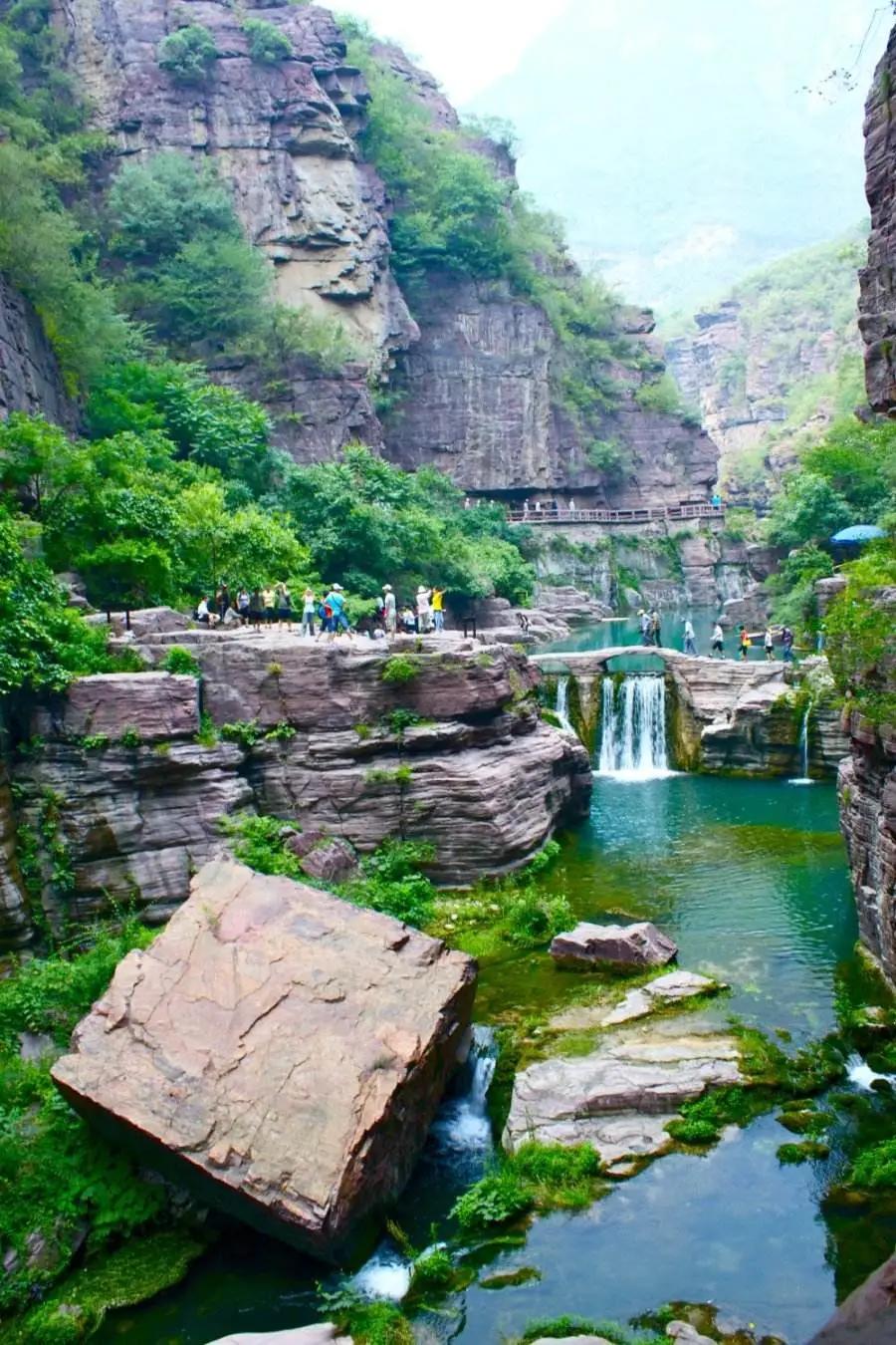 后前往云臺山,自行游覽盆景峽谷——【溫盤峪】(又名紅石峽)。那里集華夏山水與方寸之中;欣賞白龍瀑、黑龍洞、懸石、相吻石、含羞石、天女散化瀑等景觀,觀北方罕見景觀鐘乳石,盡情領略“真山、真水、真空氣”,游覽子房湖, 后游覽云臺山最高峰【茱萸峰】,茱萸峰是歷代文人墨客,僧道修行的圣地,這里植被茂密,古樹參天,有千年名樹紅豆杉,五角楓樹,太行花,森林覆蓋率高達93%,滿山覆蓋的都是原始次生林,有天然氧吧之美譽。踏千階的云梯棧道登上海拔1308米的茱萸峰頂,但見群山連綿,峰涌云動,使人頓生“會當凌絕頂,一覽眾山小”的豪邁氣概。俯視腳下,群峰形似海浪涌。山頂氣候多變,倏忽間風起云生,白霧從山間咕嘟嘟地涌出,紅日隨即隱去。山峰在云霧中出沒,云騰山浮,如臨仙界。玻璃棧道位于云臺山茱萸峰鳳凰嶺景點,在海拔1080米的半山腰上依崖而建?!?strong>玻璃棧道】分為兩段,其中一段沿崖壁呈U型,另一段懸于千米懸崖之上,總長400余米,寬約1.6米。(玻璃棧道體驗費,為20元/人需自理,如遇景區(qū)政策性關(guān)閉,則取消該景點,不另行通知,不退任何費用)