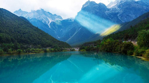 乘坐【云杉坪索道】登臨3240米海拔(高原反應(yīng)請及時自理雪山氧氣瓶,以免影響行程體驗),抵達納西族神話故事中玉龍第三國的入口云杉坪。游覽【藍月谷】(贈送電瓶車60元/人)藍月谷前身為早前人們所熟知的“白水河”。坐落于巍峨的雪山之下,柔和溫婉,素流交錯,晴時水藍泛綠,雨時潔白無瑕,且山谷呈月牙形,遠看就像一輪藍色的月亮鑲嵌在玉龍雪山腳下,所以名叫藍月谷。河水在流淌過程中因受山體阻擋,形成了四個較大的水面,人稱“玉液”湖“鏡潭”湖、“藍月”湖和“聽濤”湖。