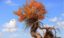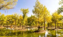 胡楊有“生而一千年不死,死而一千年不倒,倒而一千年不朽”的說法,被世人稱為英雄樹,如果說我們昨日見到的怪樹林是胡楊林死后化作的雕塑,那么我們今日看到的額濟納胡楊林便是正當壯年生氣彭發(fā)的藝術(shù)品。千姿百態(tài)的胡楊遍布在沙漠中,大家可以漫步于輝煌的金秋胡楊林,用鏡頭記錄這中國最美的秋景;或者去找尋領(lǐng)隊所說的一樹三葉的神奇景象——“幼樹葉如針似柳眉、壯齡樹葉酷似白樺、老年樹葉橢圓”,胡楊、藍天、來自大漠腹地的風聲襲來之時,胡楊林便泛起黃澄澄的層層漣漪,顯盡大西北秋冬那紅盛翠減的獨有風情。張藝謀的大片《英雄》中張曼玉與章子怡身著紅衣在這漫天的金色胡楊中打斗,踱步胡楊林,身臨其境,感受大熒屏收錄過的景色之美。