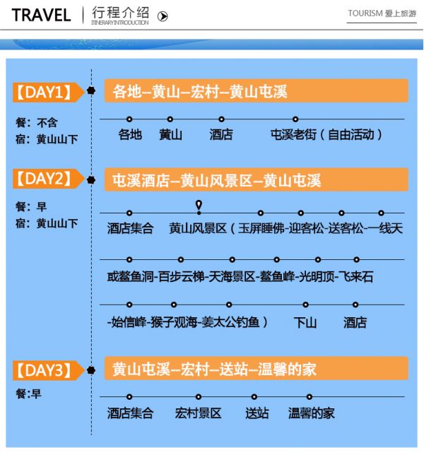 14:00——交通搭乘回程大交通返程。結(jié)束愉快旅行。溫馨提示:黃山北站參考14:30以后車次、黃山機場參考15點以后航班。周末大型節(jié)假日往后一小時。