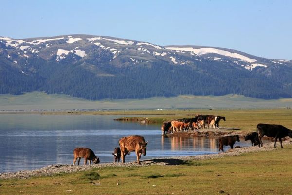 乘車赴【天山天池風(fēng)景名勝區(qū)】(含門票區(qū)間車,游覽時(shí)間不低于2小時(shí))觀瑤池八景:石門一線、大天池、小天池、定海神針、遠(yuǎn)眺博格達(dá)峰等,四周群山環(huán)抱,挺拔蒼翠的云杉、塔松漫山遍嶺、湖水清澈、晶瑩如玉、清純怡人、綠草如茵、野花似錦、羊群游移、銀裝素裹,湖周綠草如茵,繁花似錦,怪石嶙峋,含煙蓄罩,更有千年冰峰,銀裝素裹,神峻異常,峰頂?shù)谋ǚe雪,閃爍著皚皚銀光,與天池澄碧的湖水相映成趣,構(gòu)成了高山平湖綽約多姿的自然景觀,整個(gè)湖光山色美不勝收;漫步東小天池,觀看如九天銀河的懸泉飛瀑。