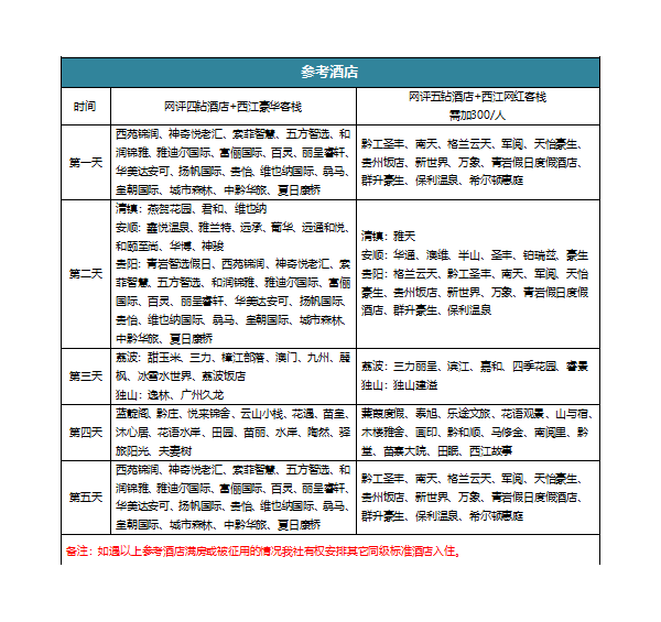 1、不含景區(qū)小交通黃果樹110元/人,西江30元/人,小七孔50元/人、天眼擺渡車50元/人費用需自理。