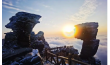 后乘車約3小時(shí)抵達(dá)銅仁國家AAAAA級(jí)風(fēng)景區(qū)【梵凈山】(不含必坐環(huán)保車20元/人+不含必坐住返索道140元/人+保險(xiǎn)10元/人)(游玩時(shí)間:不少于3小時(shí))。是中國第五大佛教名山,彌勒菩薩的道場(chǎng),也是2018年新晉的世界自然遺產(chǎn)保護(hù)地。567平方千米內(nèi),分布著800余種動(dòng)物,還有2000余種植物,是人類名副其實(shí)的寶藏。 梵凈山腰時(shí)常被云霧繚繞,流云隨風(fēng)翻騰,時(shí)而氣吞山河,時(shí)而嬌媚百態(tài),乘坐索道一路向上,穿破云海,便臨近山頂。向上攀爬少頃,蘑菇石便立于眼前,猶如天上飛來之物,傲然矗立了億萬年。雨后初晴,在與太陽相對(duì)的云霧里會(huì)有佛光顯現(xiàn),若能有幸目睹,便能帶來一整年的好運(yùn)。再向前,紅云金頂拔地而起,如玉筍插天,直指蒼穹。紅云金頂山峰的上半部分,被金刀峽一分為二,分成兩座小山頭,由天橋相連,兩邊各有一個(gè)寺廟,一邊供奉著現(xiàn)在佛釋迦摩尼,一邊供奉著未來佛彌勒,登臨梵天凈土接受兩位佛祖的賜福。