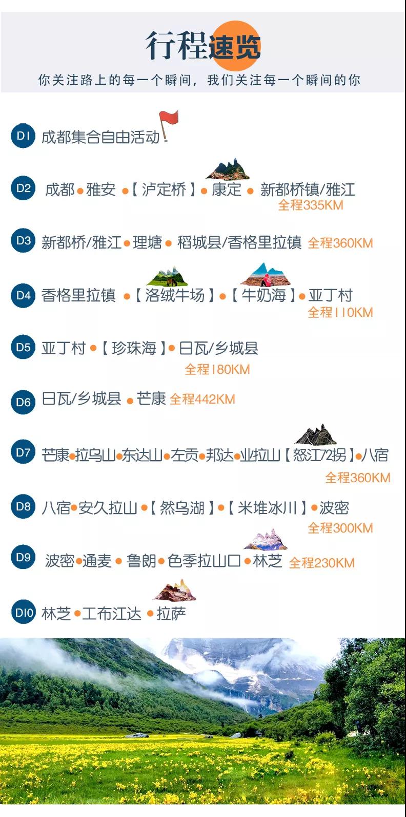 新都橋/雅江 — 天路十八彎 — 理塘 — 兔兒山 —稻城縣/香格里拉鎮(zhèn)(全程360km)