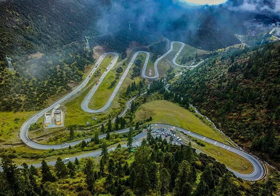 穿越剪子彎山遂道,駛過美麗的卡子拉山(埡口海拔4718米),途中經(jīng)過【天路十八彎】,俯瞰盤旋而上的盤山公路,曲折而急促的胳膊肘彎,有一種震撼的曲線美!